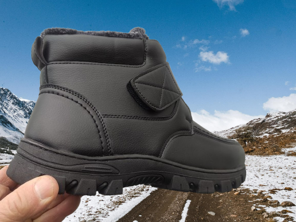 Саята е от висококачествена изкуствена кожа, с велкро лепенка и страничен цип. Дебел топъл хастар. Ходилото е шито към саята.